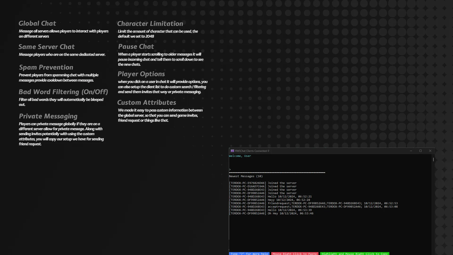 Advanced Multiplayer Chat System is the ultimate communication solution for Unreal Engine games. Whether you're building a small co-op experience or a massive multiplayer world, this plugin delivers global, server-only, and private messaging with full moderation control.